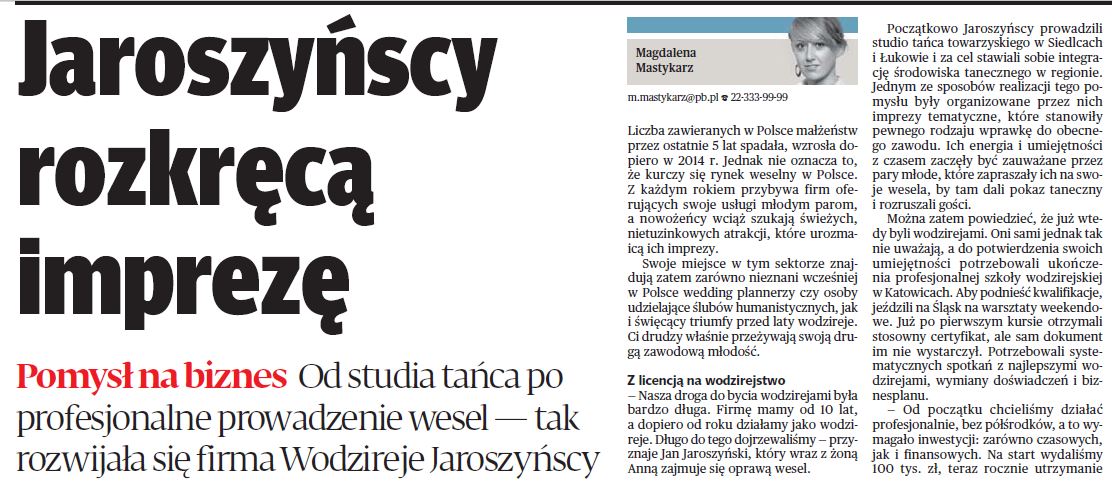 Miło nam poinformować, iż nasze starania wodzirejsko – taneczne zostały docenione przez prestiżowe pismo PULS BIZNESU.